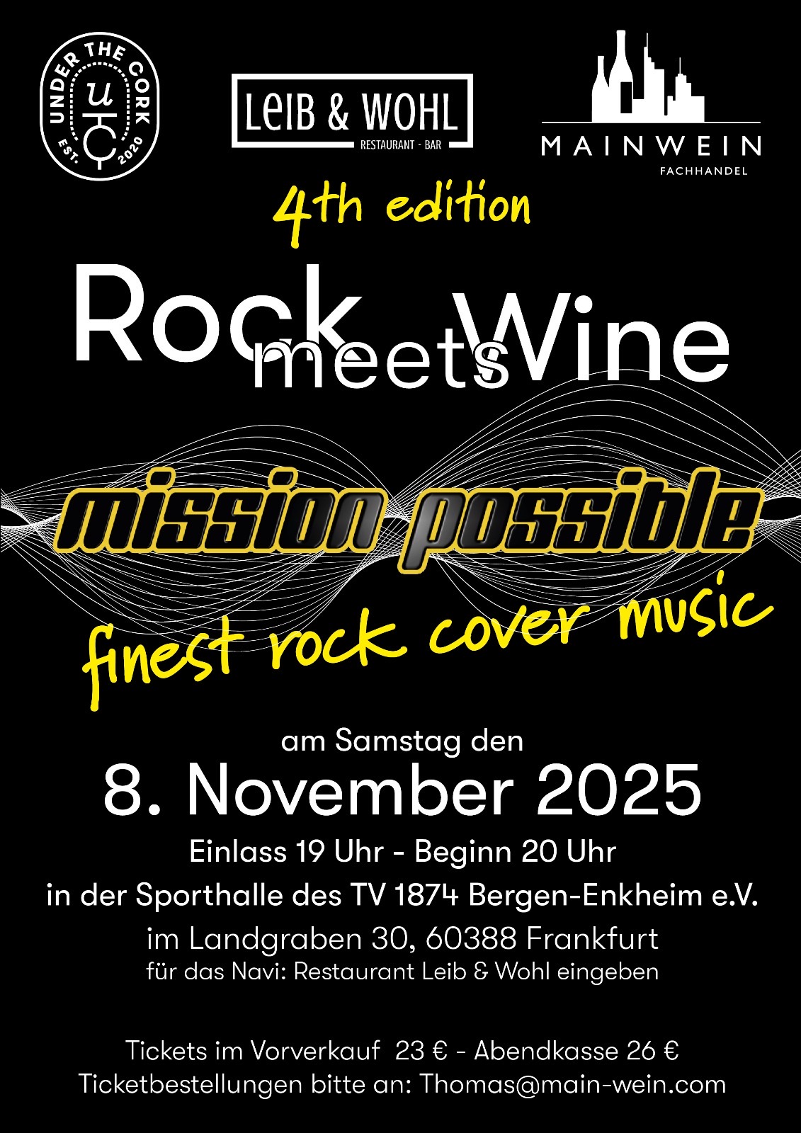Nach den gelungenen Veranstaltungen der letzten Jahre geht ,,Rock meets Wine‘‘ in die nächste Runde – am 08. November ab 20 Uhr geht’s los.